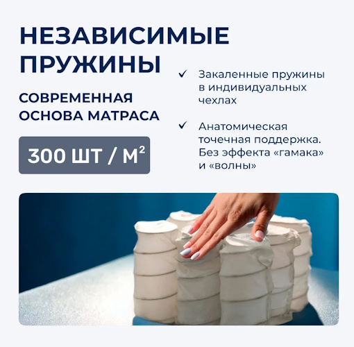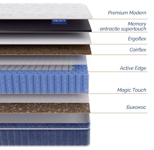 В качестве основы матраса используется система анатомической поддержки Magic Touch, состоящая из двух типов независимых пружин - основная площадь спальной поверхности поддерживается блоком Soft Touch (420 пружин на спальное место), а по периметру данный блок окружён усиленными пружинами Magic Chess, обеспечивающими плотность краёв и сохранение геометрической формы матраса в течение всего периода эксплуатации.
