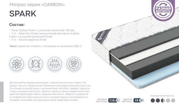 | ППУ (пенополиуретан) | Пена высокой плотности «Carbon Foam» с угольной пропиткой |
