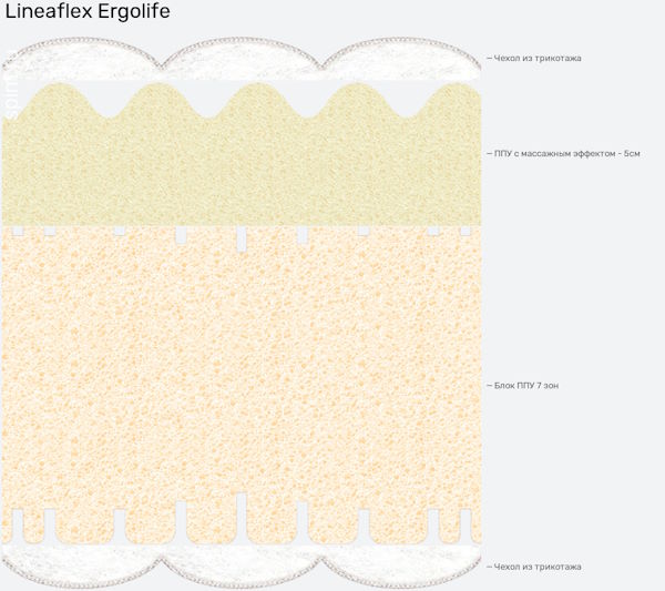 Ортопедический массажный матрас Эрголайф от российского бренда «Линия Флекс» может похвастаться беспружинным несущим блоком, «мягкой» жесткостью, повышенной упругостью и умением создавать оптимальный микроклимат в Вашей постели.