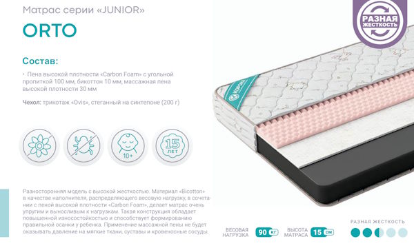 | Жесткость у матраса | Разносторонняя жесткость |