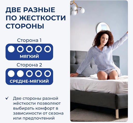 | Жесткость у матраса | Разносторонняя жесткость |