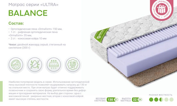| Наполнитель матраса | Высокоэластичная пена/кокос |